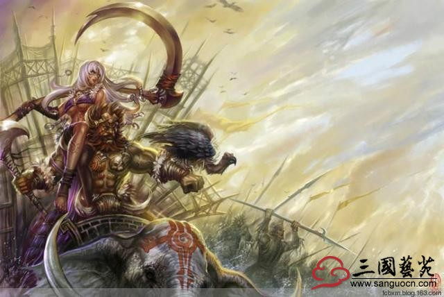 刘备&孙尚香 刘备,蜀国的第一任君主,和关羽、张飞结为兄弟,三人共同开疆辟土。刘备大多数是以指挥者的形象出现,最著名的战役就是三英战吕布。武力远逊于关羽和张飞,武力值定为60。 孙尚香,孙权的妹妹,爱好兵器剑法。刘备与孙尚香成亲的当天,刘备被孙尚香屋内的兵器吓到了。由此可知,孙尚香武力值高于刘备,但也不会高太多,定为64。 二人平均武力值62。 No.2 孟获夫妇(孟获&祝融)