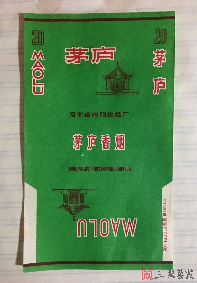 南阳烟厂的“三无”及早期“焦含量”之“茅 庐” 君臣一语交投后, 宇宙三分割据雄。 英雄鼎足三分势, 只在茅庐一语中。 古人,把诸葛亮与刘备的南阳对话概括得酣畅淋漓;茅庐,是三国历史文化的策源地。 南阳卷烟厂的产品,体现着南阳人对诸葛亮、对卧龙岗得思想感情。 他们在长期出品“卧龙岗”、“诸葛庐”牌香烟的同时,又于八十年代初期开始,在以后的十几年间,至少开发有近三十个品种的“茅庐”牌香烟。 1983年,“河南南阳卷烟厂”生产有绿、白两种颜色的三无标“茅庐”牌香烟。 所谓“三无标”,是指烟标上无“过滤嘴”、“焦含量”和“R”(表示注册)字样。 “三无标”,是八十年代中期以前烟纸的标志。 从烟标文化讲,这两种烟纸还属于色套标。 到了1986年,中国烟草总公司统一规定,烟标上要加印焦油含量。 于是,“中国南阳卷烟厂”在生产的底色为红、绿的“茅庐”牌烟盒上,就印上了“烤烟型焦油含量高”和“注册商标”的字样。 这两种烟纸,在烟标文化上也属于色套标。 烟标上注明“烤烟型焦油含量高”和“注册商标”的字样,是时代进步的标志。 以上几种“茅庐”牌香烟,图案还比较单一,价格也比较低廉,印象中,绿底图案的,为8分钱一盒。 这些新开发的“茅庐”牌香烟,和已经在市场上畅销的“卧龙岗”、“诸葛庐”香烟,对宣传南阳卧龙岗文化,起有一定的作用。 |