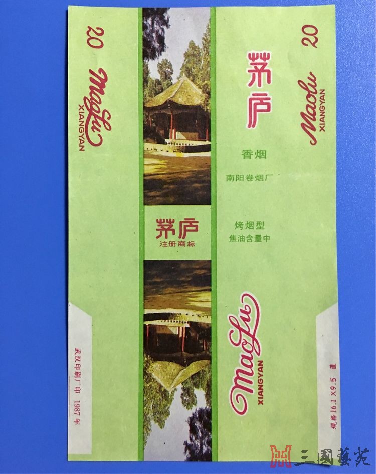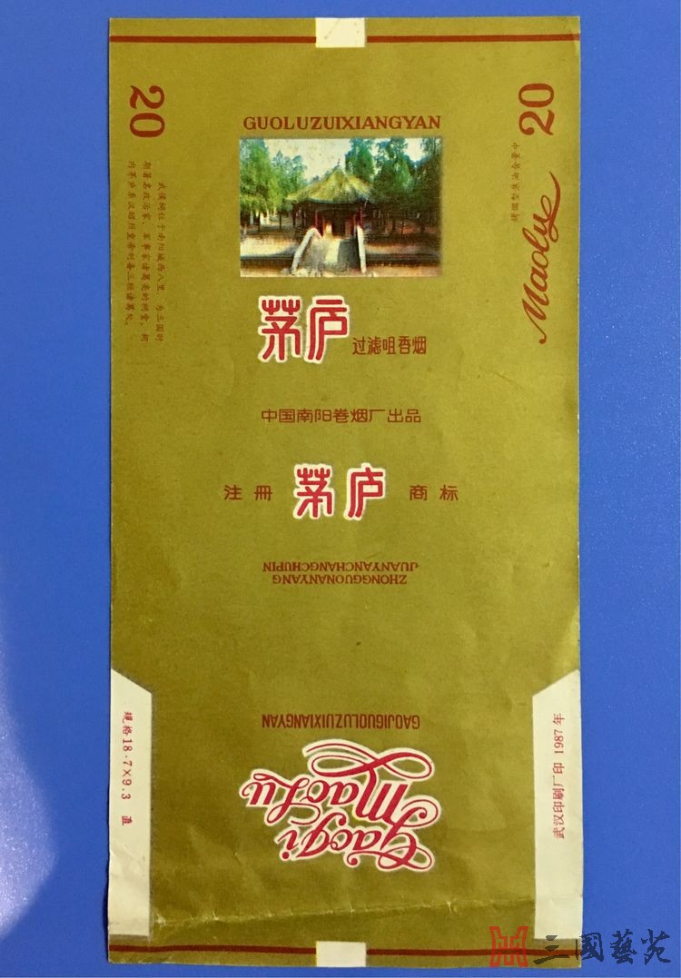 南阳烟厂特色“茅 庐” 1984年,南阳卷烟厂又研制出了多种“茅庐”牌卷烟。 其中一款,烟标主版是南阳卧龙岗上的草庐图案,并有文字说明: “南阳诸葛茅庐为汉昭烈皇帝刘备三顾诸葛亮的故址”。 烟标正面:刘备,率关羽、张飞顶风冒雪三顾茅庐;诸葛亮,手持羽扇、彬彬有礼迎接客人于门外;柴门的茅草上,覆盖着厚厚的积雪;青松,让积雪压弯了枝头…… 啊!好一幅脍炙人口的“三顾”情景。 三国历史的画卷,就从这个场面渐渐展现! 这也不禁让我想起巜三国演义》中描述刘关张之前拜访卧龙岗的诗篇: 一天风雪访贤良, 不遇空回意感伤。 冻合溪桥山石滑, 寒侵鞍马路途长。 当头片片梨花落, 扑面纷纷柳絮狂。 回首停鞭遥望处, 烂银堆满卧龙冈。 刘、关、张历经风雪,坚忍不拔,三请诸葛共谋霸业的可贵精神,真是让人感动。 到了1986年,南阳卷烟厂首次在烟标上使用卧龙岗实景照片。“茅庐”牌号和茅庐实景的结合,给人以清新时尚和文化厚重的感觉。 这两款卧龙岗照片烟标,好像也是南阳卷烟厂仅有的两种卧龙岗照片烟标。 1995年,南阳卷烟厂又开发出品了铁听50支装的“茅庐”香烟。 “茅庐”牌香烟投产于1983年,2000年停产。其生产时间之长、品种之多、烟标图案之丰富多彩,充分反映了厂家对南阳诸葛亮的钟情和人们对这一品牌的喜爱。 “ 茅庐”的畅销不衰,利润也自然可观。我听说,仅1995年第一季度,此牌号实现利润就高达百余万元。 “茅庐”,让卷烟厂家想象无限,让南阳人自豪千余年,让外地人对南阳刮目相看! |