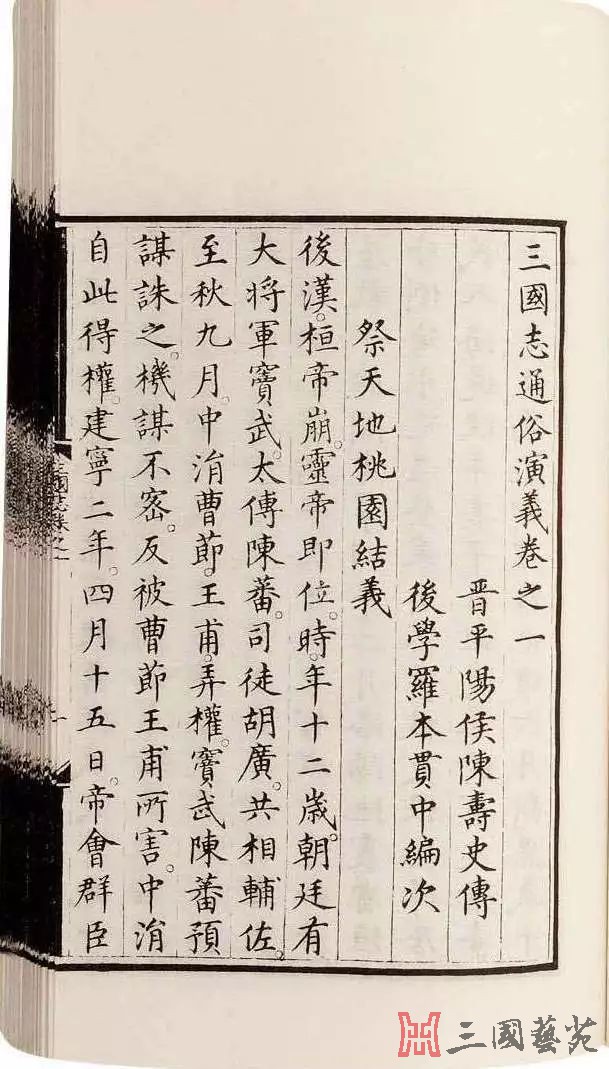 《刘世德话三国》 然而,罗贯中却在这个问题上犯了错误。 让我们到《三国志》里去查找“杨大将”的出处。 《三国志·吴书·孙破虏讨逆传》说: “时袁术僭号,策以书责而绝之。曹公表策为讨逆将军,封为吴侯。后术死。长史杨弘、大将张勋等将其众欲就策,庐江太守刘勋要击,悉虏之,收其珍宝以归。” 在这段文字中,“长史杨弘、大将张勋”八个字连写。 这告诉我们,长史姓“杨”名“弘”,而“大将”则是表明张勋的身份。 古书不施标点。“长史杨弘大将张勋”八字连读。一时眼花,偶尔看漏了那个“弘”字,八个字变成了七个字,再把“杨大将”三字连读,让“张勋”和“大将”脱离了关系,终于在文官身上制造出“大将”这样一个奇怪的名字, ——这就是罗贯中犯错误的由来。 |