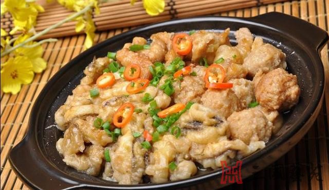 貂婵豆腐: 这是以美女貂婵的名字命名的一道佳肴,又名“汉宫藏娇”,也叫“泥鳅钻豆腐”,是民间的传统风味菜,具有浓郁的乡土气息,在许多地方都有制作,尤以河南周口地区的民间制作最为出名。 将排除掉脏物的小泥鳅和整块豆腐放入砂锅中,倒入凉排骨汤,加入各种佐料水煮,泥鳅被热气所逼钻入豆腐中躲藏,待到汤沸即被全部烫死在豆腐中,然后改小火烹成。这道菜以洁白的豆腐形容貂婵之纯洁,以细滑的泥鳅比喻董卓之奸滑。泥鳅在热汤中急得无处藏身,便钻入冷豆腐中,但仍逃脱不了被烹煮的命运。就好像王允献貂婵,巧使美人计一样。 “貂婵豆腐”不仅汤清见底,鲜嫩可口,还很有营养。泥鳅所含蛋白质、脂肪、钙、磷及维生素等成分,均超过一般鱼类的含量,且肉质细嫩鲜美,有解毒收痔之功,被誉为“水中人参”。豆腐营养丰富,美中不足的是所含人体必需氨基酸中的蛋氨酸含量较少,而鱼类含量却非常丰富,二者合起来吃恰恰是营养上的好搭档。