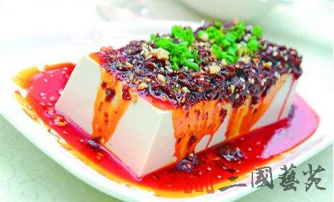 剑门豆腐: 俗话说:不吃剑门豆腐,枉游天下雄关。剑门豆腐始于一千多年前的蜀汉三国,大将军姜维兵败汉中退守剑门后,钟会紧追不会,逼至关下,日日喊杀不休。姜维因兵疲不能战,马困不能骑,无法迎敌。地方官便发动关内所有百姓,家家磨豆浆,户户做豆腐,以豆腐犒劳士兵,以豆渣饱喂军马。数日后,姜维兵马体力大振,终于打败了钟会。从此,民间竞相制作豆腐,并在剑门世代流传。apn川味坊四川美食网 剑门豆腐有其独特之处:一是制作剑门豆腐的黄豆产于剑门山的沙石土壤中,生长期长,含有比其它地方更多的蛋白质和脂肪;二是剑门豆腐是用剑门山最坚硬的石头做成的石磨磨浆,它磨的浆细、渣少;三是制作剑门豆腐和烹调时使用的是剑门七十二峰的剑泉水。如今,剑门豆腐的制作技艺越来越精,花样品种越来越多,烹调方法有炒、炸、熘、烧、炖、氽、凉拌等,能制作180多道豆腐佳肴。