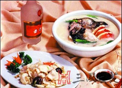 将军过桥: 汉献帝建安十三年(公元208年),曹操率兵夺取了襄阳,又出动大军直取江陵,想一举消灭刘备。刘备被曹兵追至当阳,命张飞断后。张飞令军士在当阳桥后的树林里砍下一些树枝拴在马尾上,在树林里往来奔跑,卷起漫天尘土。张飞独自一人在桥上横矛立马,怒视以待。待曹兵追近,张飞一声大喝,犹如晴天霹雳,吓得曹兵目瞪口呆。曹操见树林中尘土飞扬,恐有伏兵,急令军士撤退。曹兵撤走后,当地百姓闻知张飞在此,便献上烹好的鱼让他充饥。张飞饥不择食,连声称好。问其菜名,一老者想了想说:“鱼因将军来,菜为将军吃,当阳桥上一声吼,吓退曹兵百万兵,就叫它‘将军过桥’吧!” 将军过桥,又叫“黑鱼两吃”,是用黑鱼、鸡蛋清、水发玉兰片、黑木耳、鸡汤及多种调味料烹制而成。此菜鱼片细嫩,鱼肠香软,汤羹浓鲜,美味可口,营养丰富,即能佐酒又可佐餐。